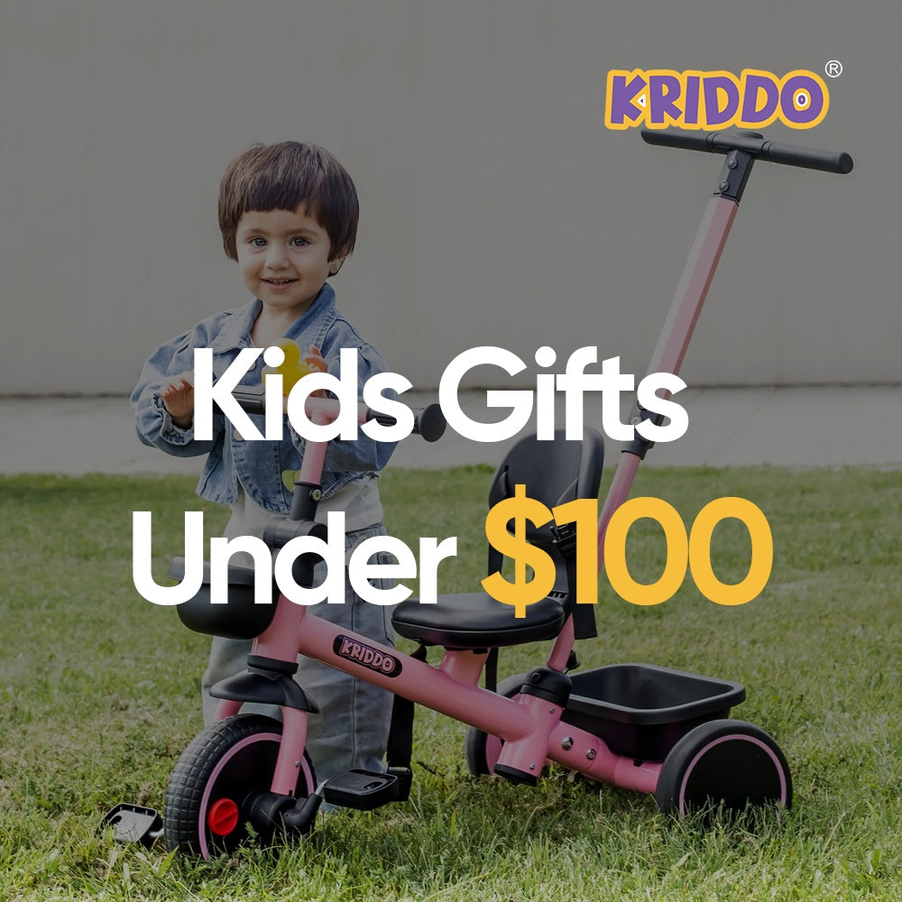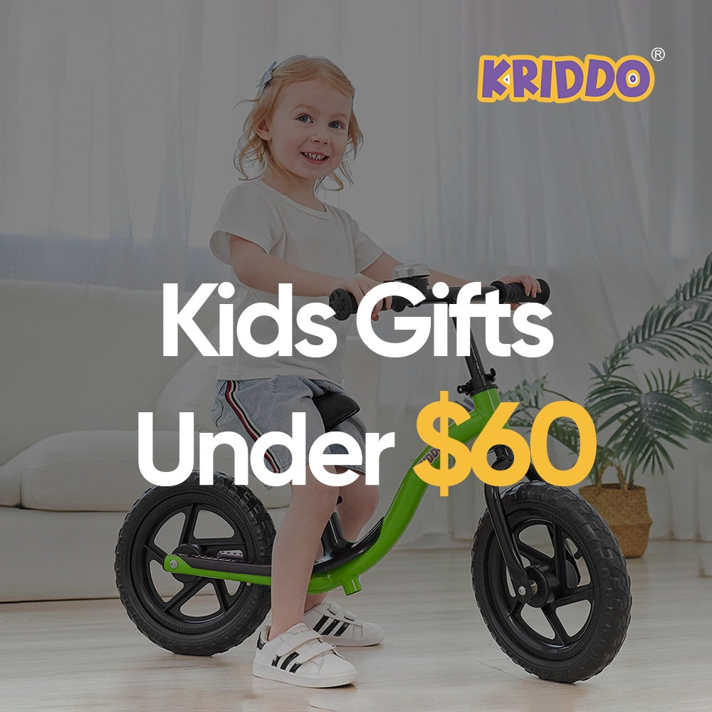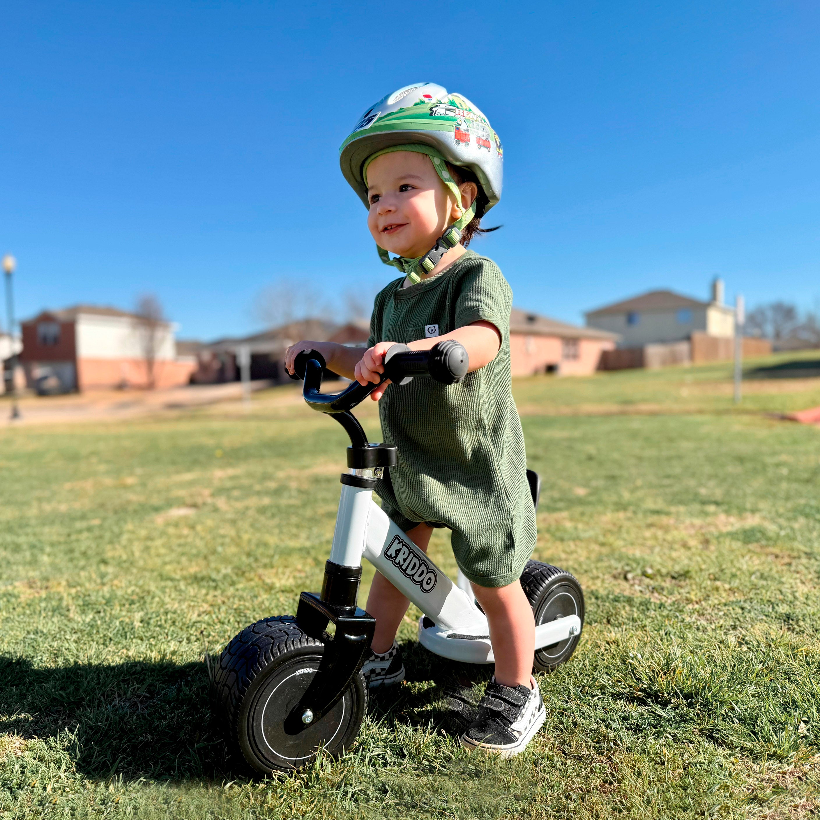 The KRIDDO Toddler Balance Bike boasts a sturdy frame, a footrest to teach toddlers to pick up their feet, and durable all-terrain tires that glide along surfaces from grass to pavement.