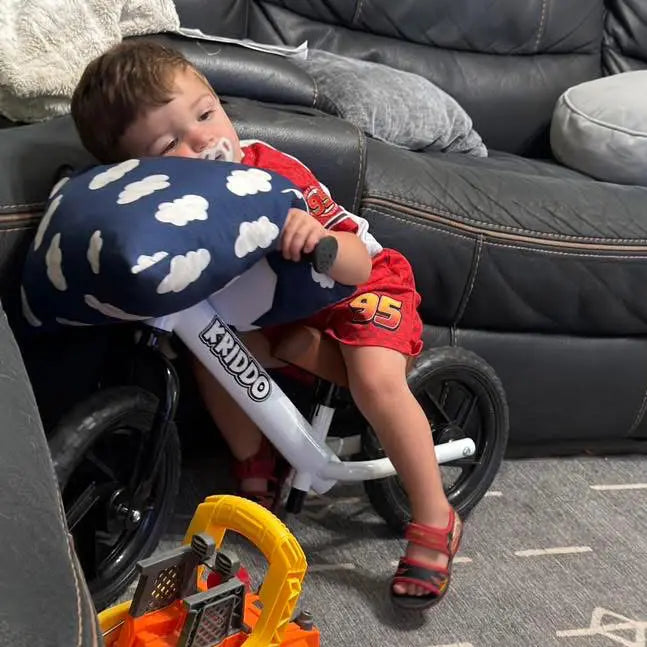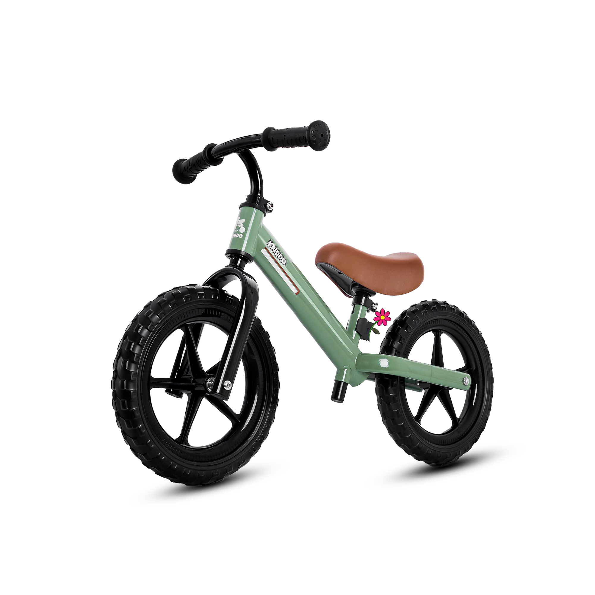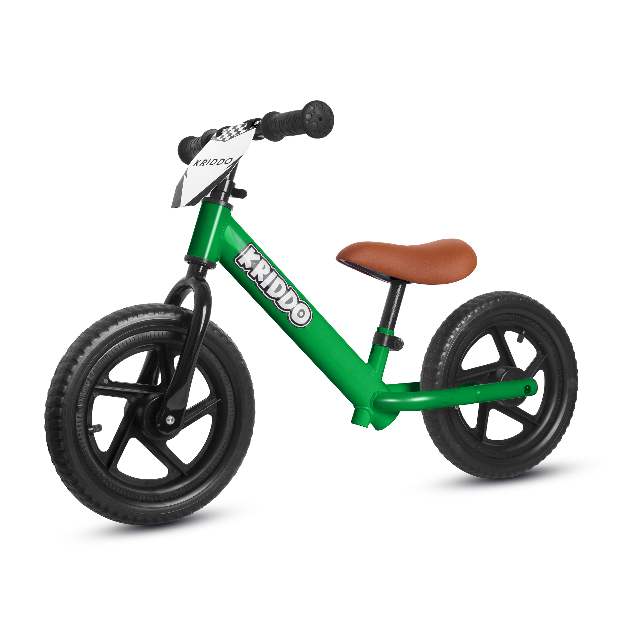 The KRIDDO Toddler Balance Bike boasts a sturdy frame, a footrest to teach toddlers to pick up their feet, and durable all-terrain tires that glide along surfaces from grass to pavement.