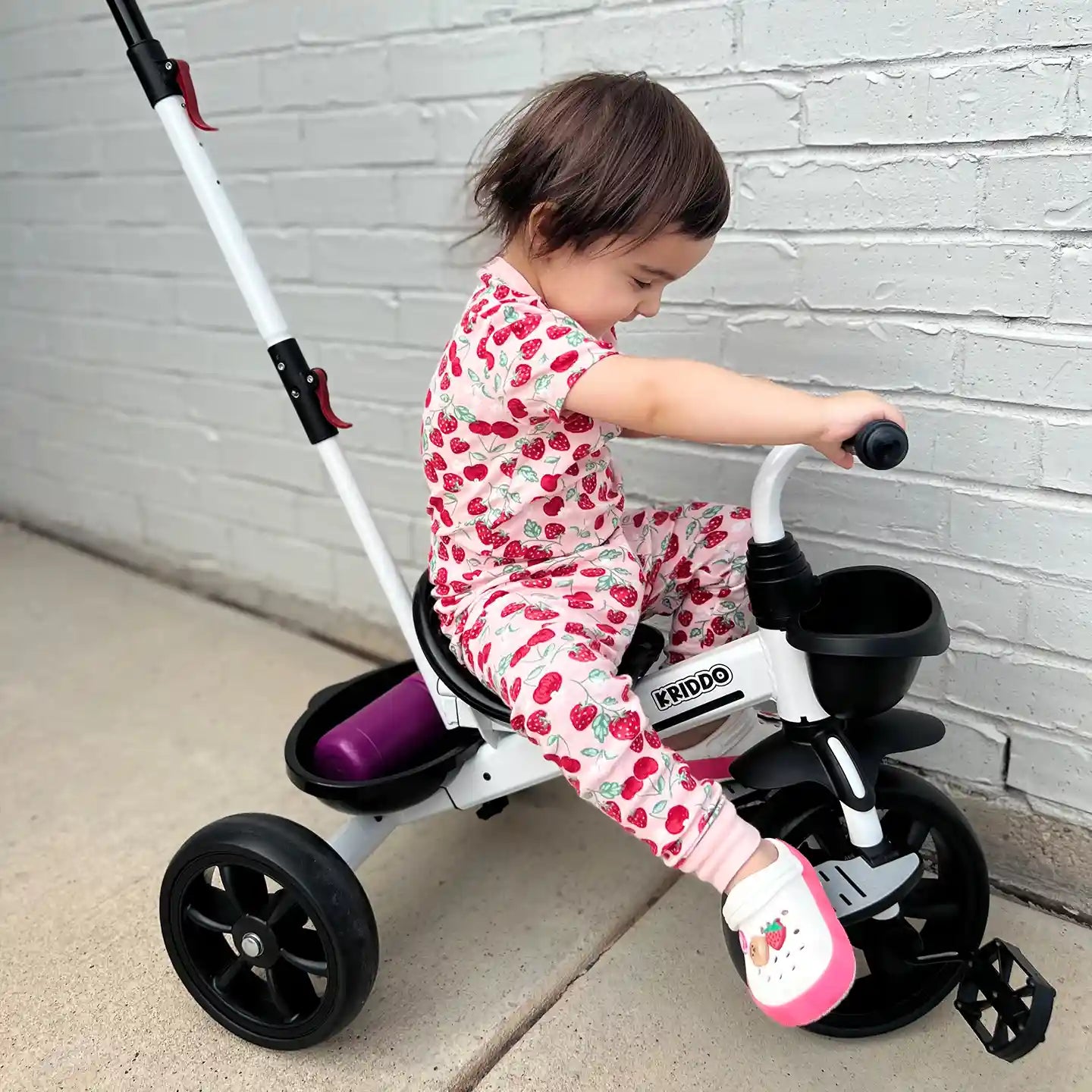 This is not your ordinary tricycle. It features a triangular frame, a wider wheelbase, and extended rear wheels to prevent tipping and rolling over, adding an extra layer of security for young, unsteady riders.