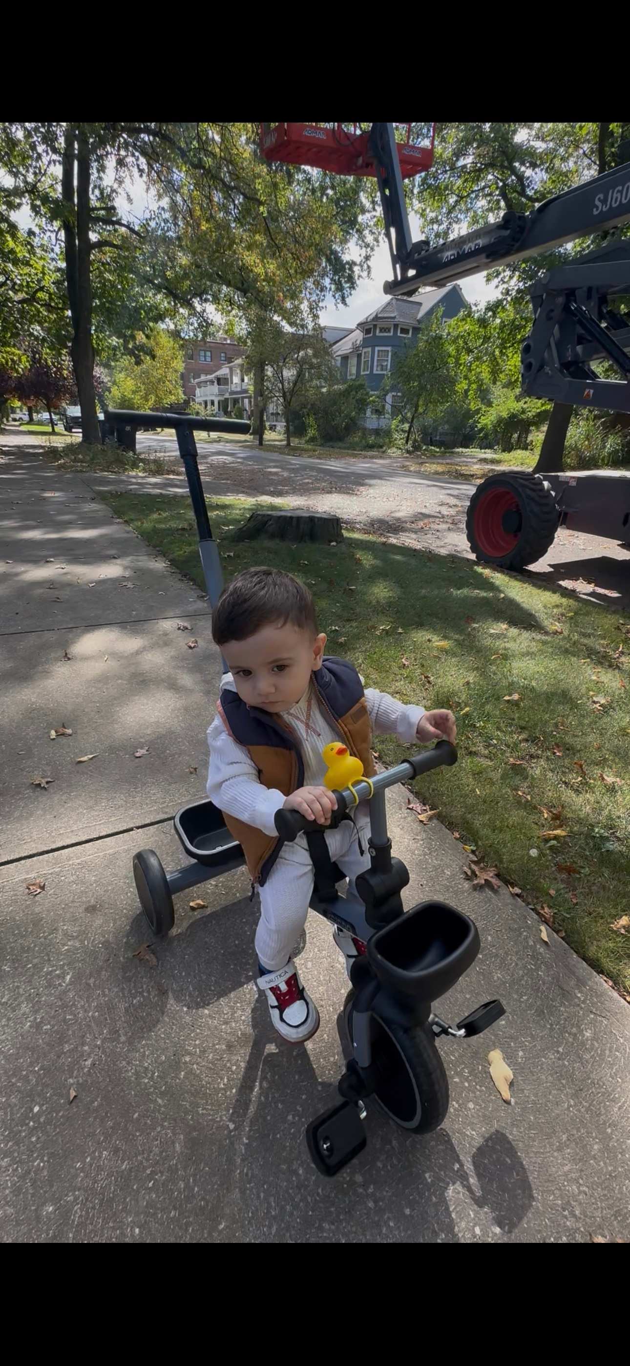 - Three-level adjustable handle suits different heights and detaches for independent trike mode.