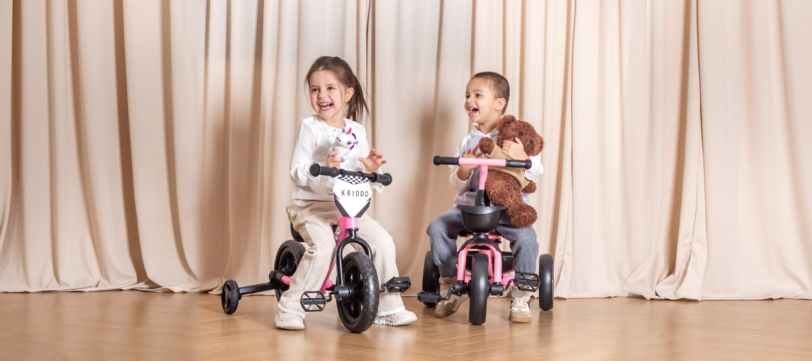 • A smooth toddler bike with training wheels and pedals experience