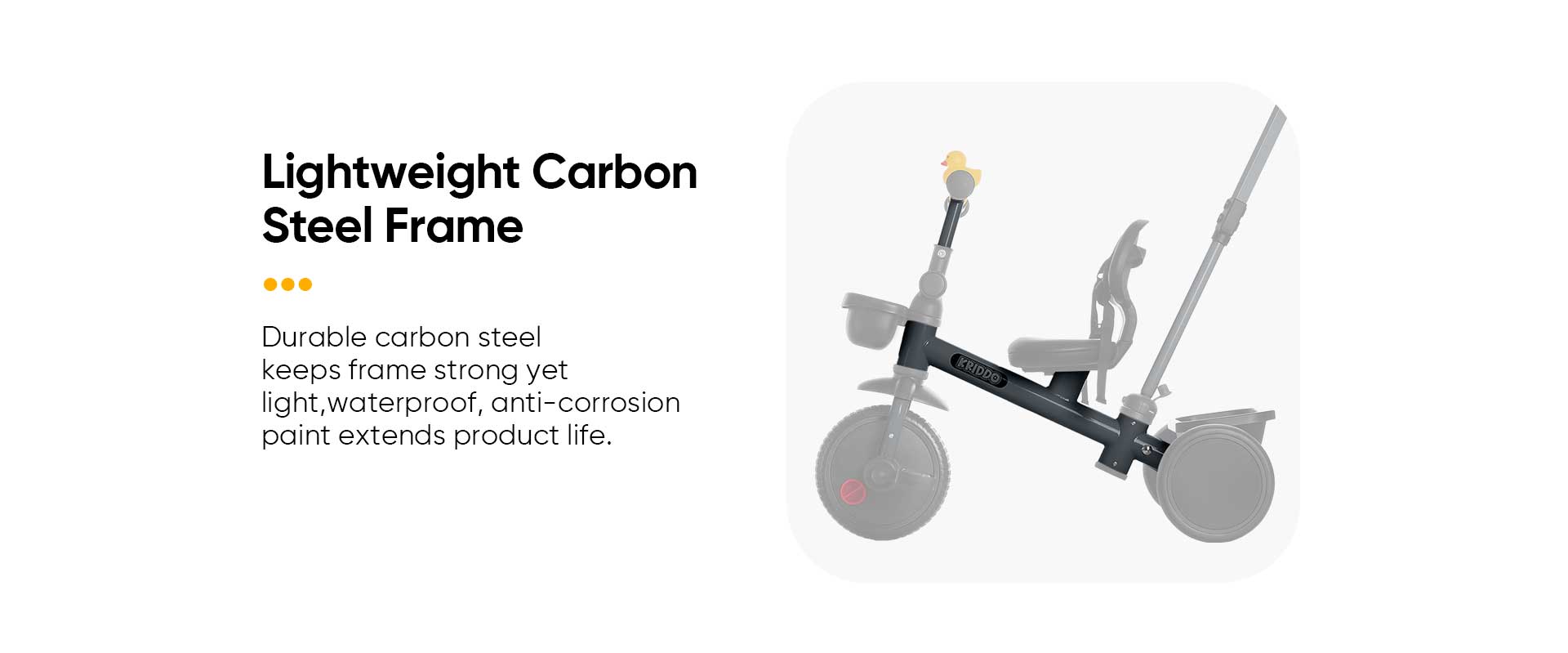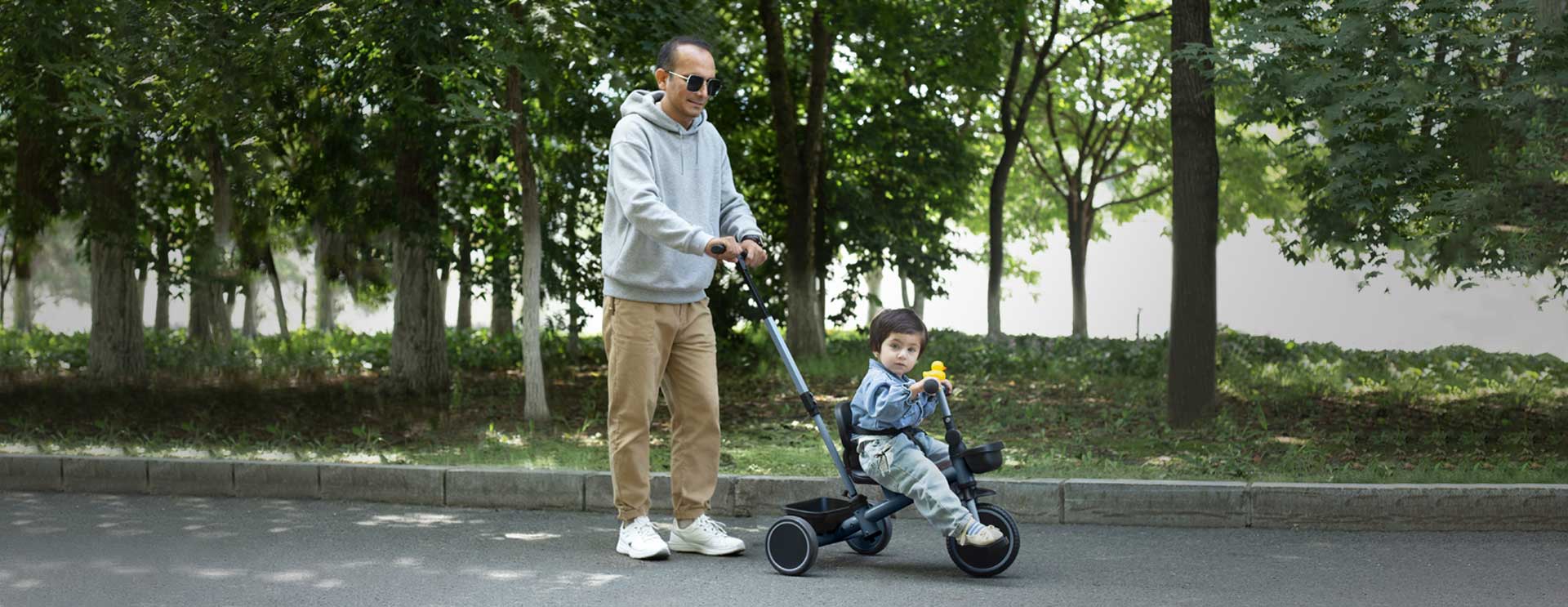 - Three-level adjustable handle suits different heights and detaches for independent trike mode.