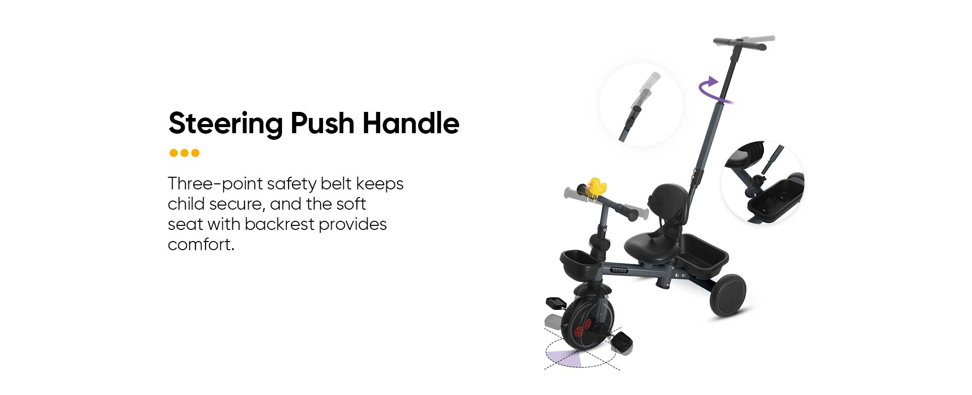 KRIDDO 2-in-1 Kids Tricycle with Steering Push Handle for Ages 18 Months to 5 Years