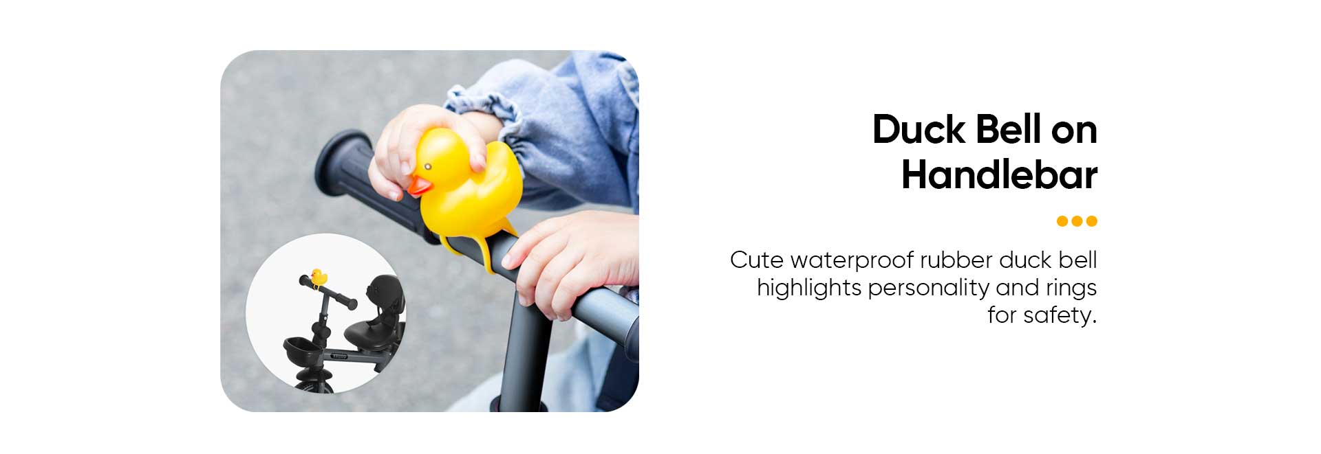 - Playful waterproof duck bell on the handle adds fun, sound, and a touch of personality to every trip.