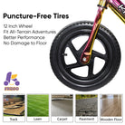 Puncture - free, shock - absorbing tires keep toddlers safe and comfortable on any terrain.
