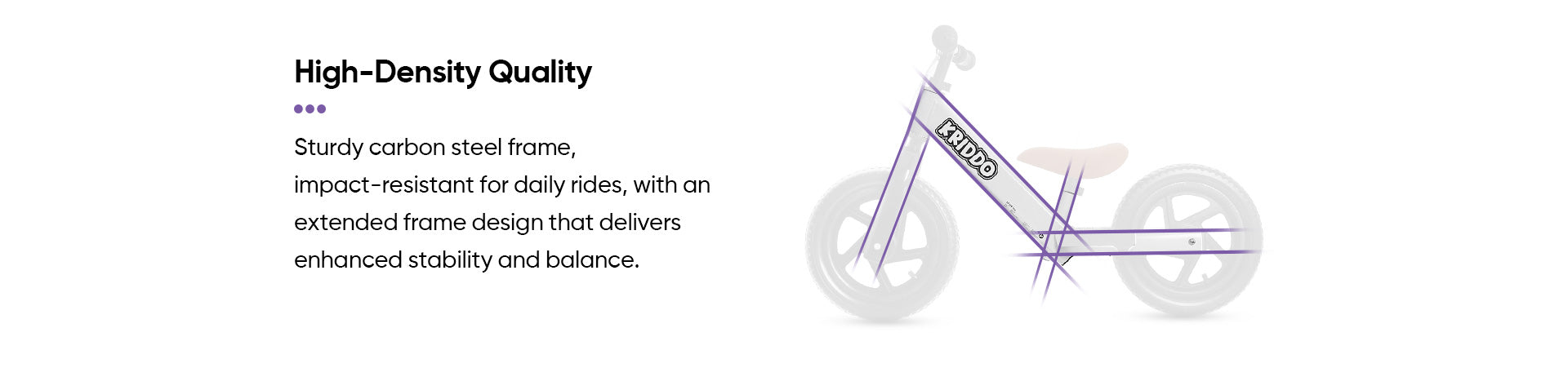 KRIDDO Classic Balance Bike L is made from high-quality, BPA-free materials and coated with non-toxic matte paint. All products are tested in certified third-party laboratories and comply with KRIDDO’s internal safety standards. They meet safety regulations in the US, Canada, the UK, and the EU—ensuring every ride is safe and worry-free for parents worldwide.