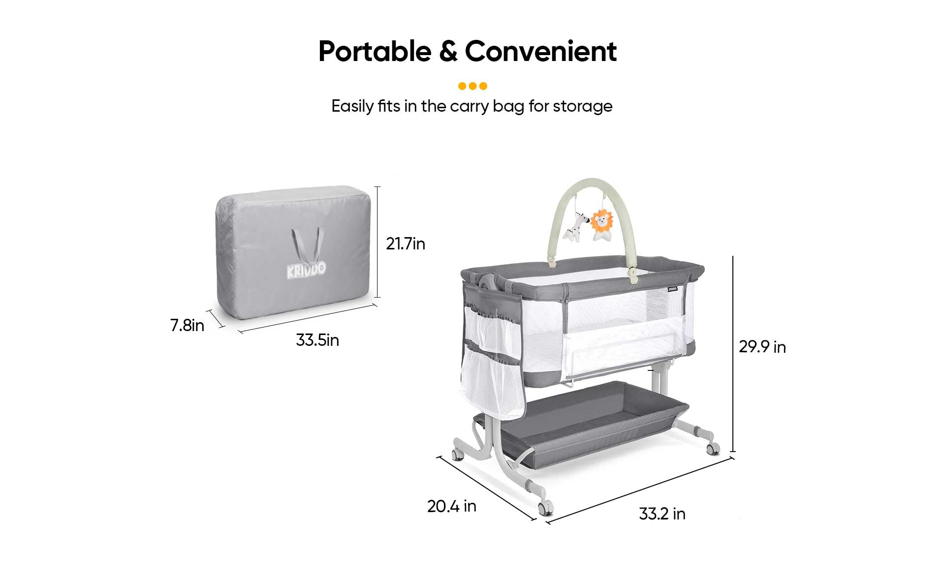 KRIDDO Portable Bedside Sleeper Baby Crib for Newborns (0–5 Months)