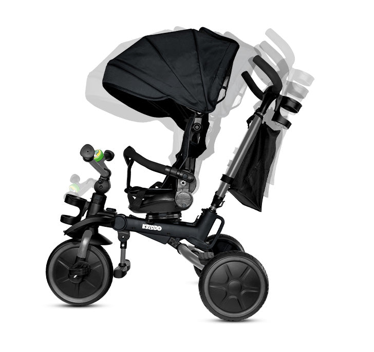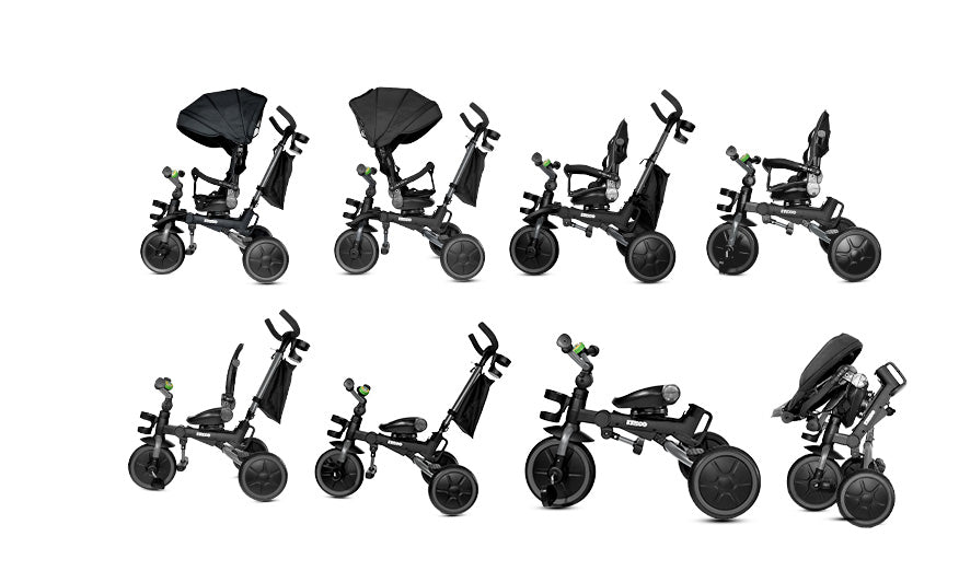 - Converts from baby seat to independent push trike